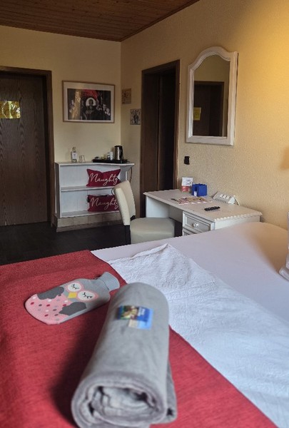 Alle Zimmer verfügen selbstredend über Dusche/WC und TV und außerdem über eine Tee-/Kaffeestation